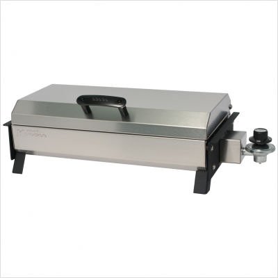 Kuuma 83727 Features: -Profile 150 propane grill. -Constructed of stainless steel. -Sleek, portable but powerful grill that is perfect for boating, camping or tailgating. -Provides a 150-square-inch cooking surface. -Delivers a 9,000-BTU output and runs off a 1-pound disposable bottle or a large propane tank (not included). -Integral foldaway legs. -Stay cool handle and a removable grease tray for easy clean up. -Simple control knob allows for adjusting the heat for great grilling results. -Pedestal leg threads onto base plate; grill secures with 2 thumbscrews. -Fully assembled. -One year warranty. -Grill dimensions: 12" H x 7" W x 27" D.